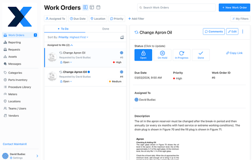 - Work orders don’t need to be tied to specific assets, which works well for facilities management tasks